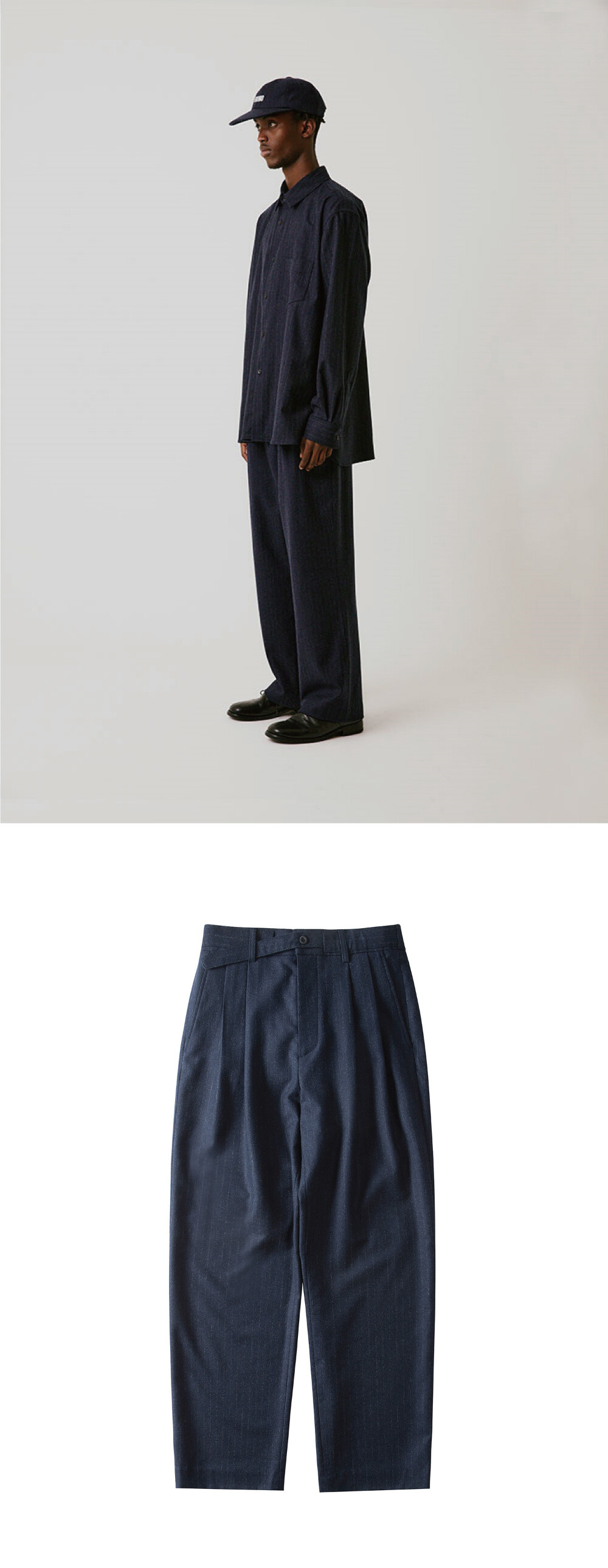 전체적으로 여유있는 실루엣의 투턱 와이드 팬츠입니다.