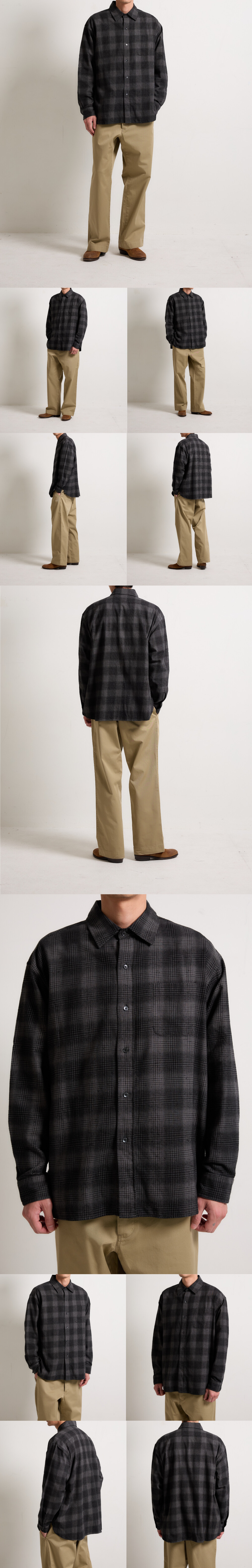 스탠다드한 디자인이지만 매력적인 원단을 사용하여 셔츠 하나만으로도 임팩트 있게 스타일링 할 수 있는 아이템입니다. 루즈한 실루엣으로 여유있는 패턴의 핏입니다.