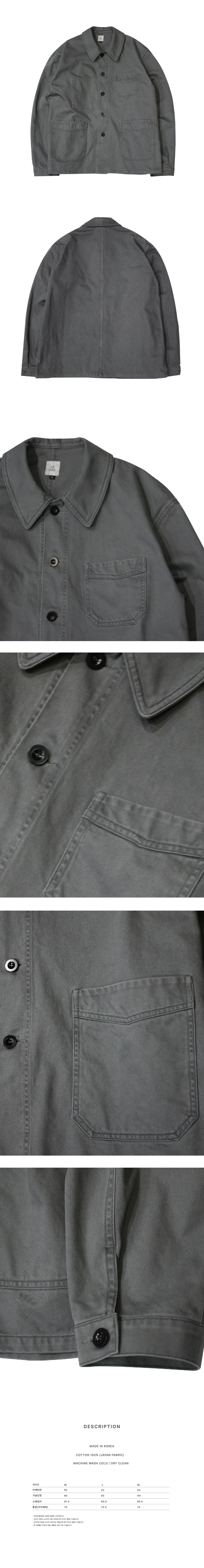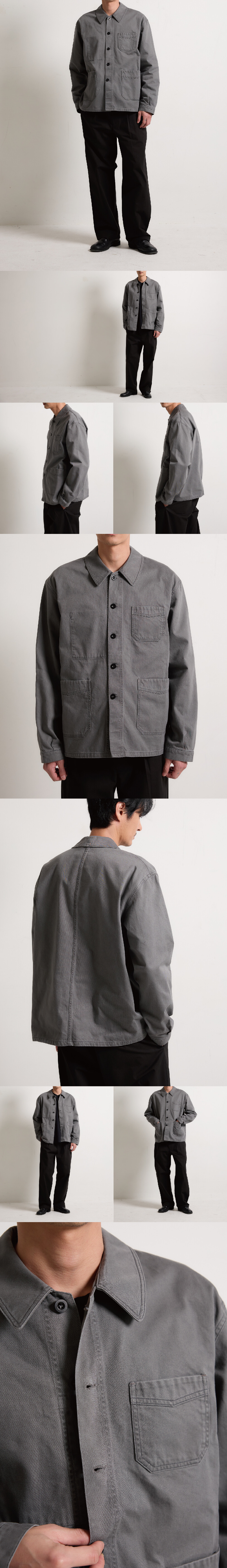 빈티지 프렌치 워크자켓을 재해석하여 만들어진 제품입니다. 카라 모양, 주머니 모양, 단추, 스티치 디테일 등을 차용하여 제작되었습니다.