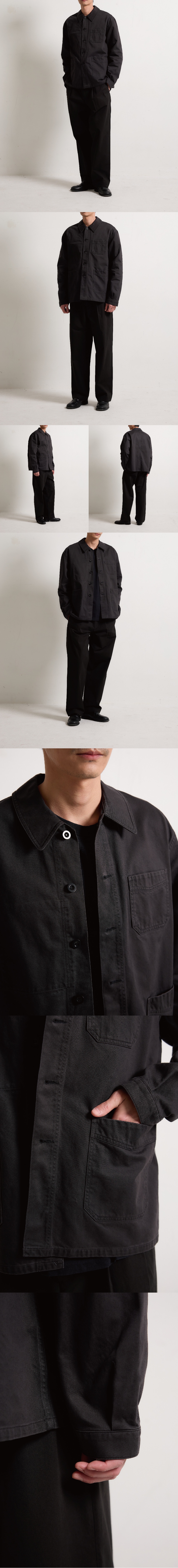 빈티지 프렌치 워크자켓을 재해석하여 만들어진 제품입니다. 카라 모양, 주머니 모양, 단추, 스티치 디테일 등을 차용하여 제작되었습니다. 강한 바이오 워싱을 통해 빈티지 감성을 잘 풀어낸 자켓입니다. 간결하고 여유로운 실루엣으로 편안하게 착용하실 수 있습니다.