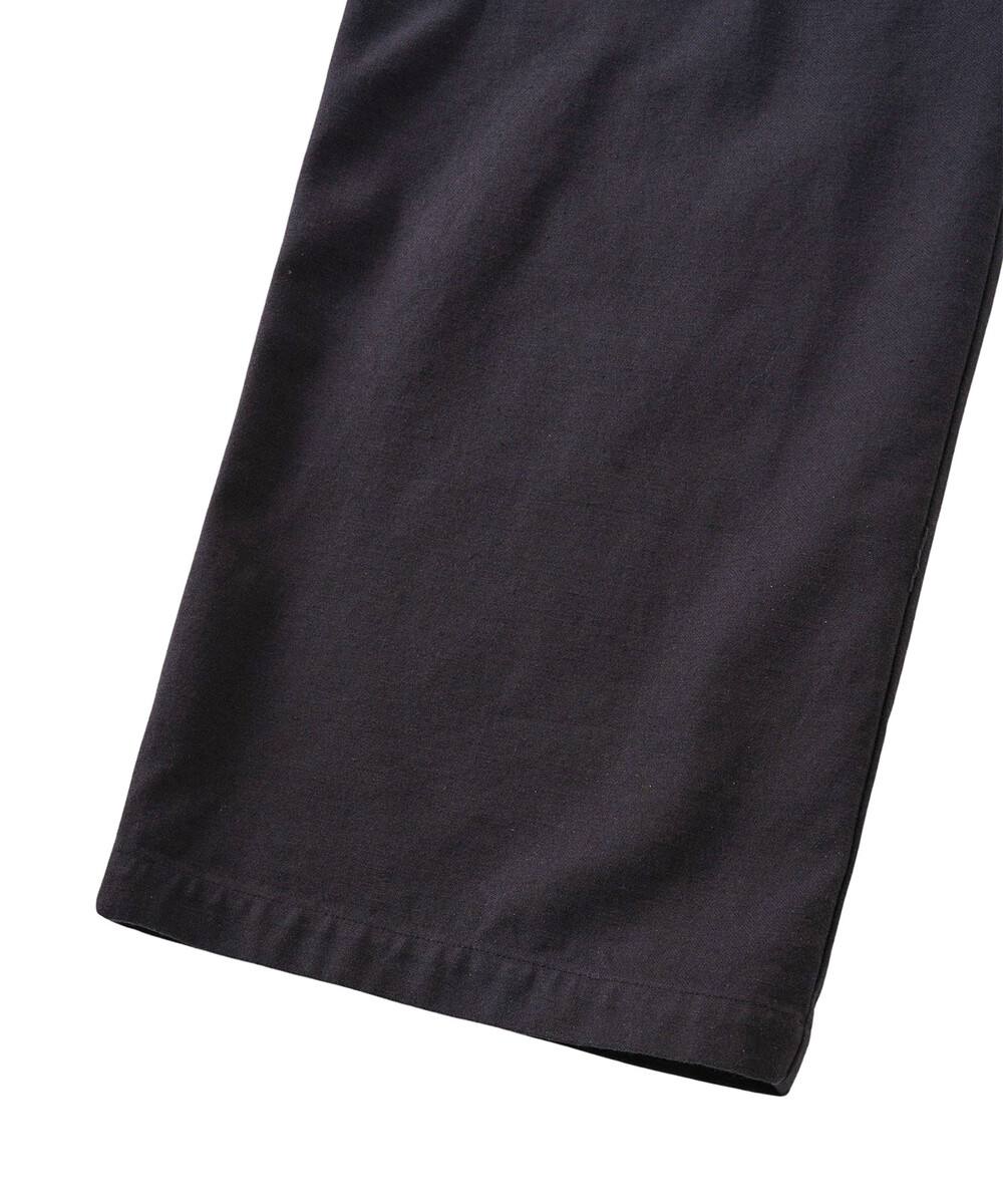 U.S. ARMY OG107 전투복과 유틸리티 팬츠에서 착안해 백사틴 조직을 리메이크한 일본 원단을 사용했으며, 특히 일반적인 넵사와 달리 실의 굴곡이 랜덤하게 형성되어 불규칙한 슬럽감이 특징인 무라이토 실을 위사에 적용해 빈티지한 무드를 더욱 강조했습니다.