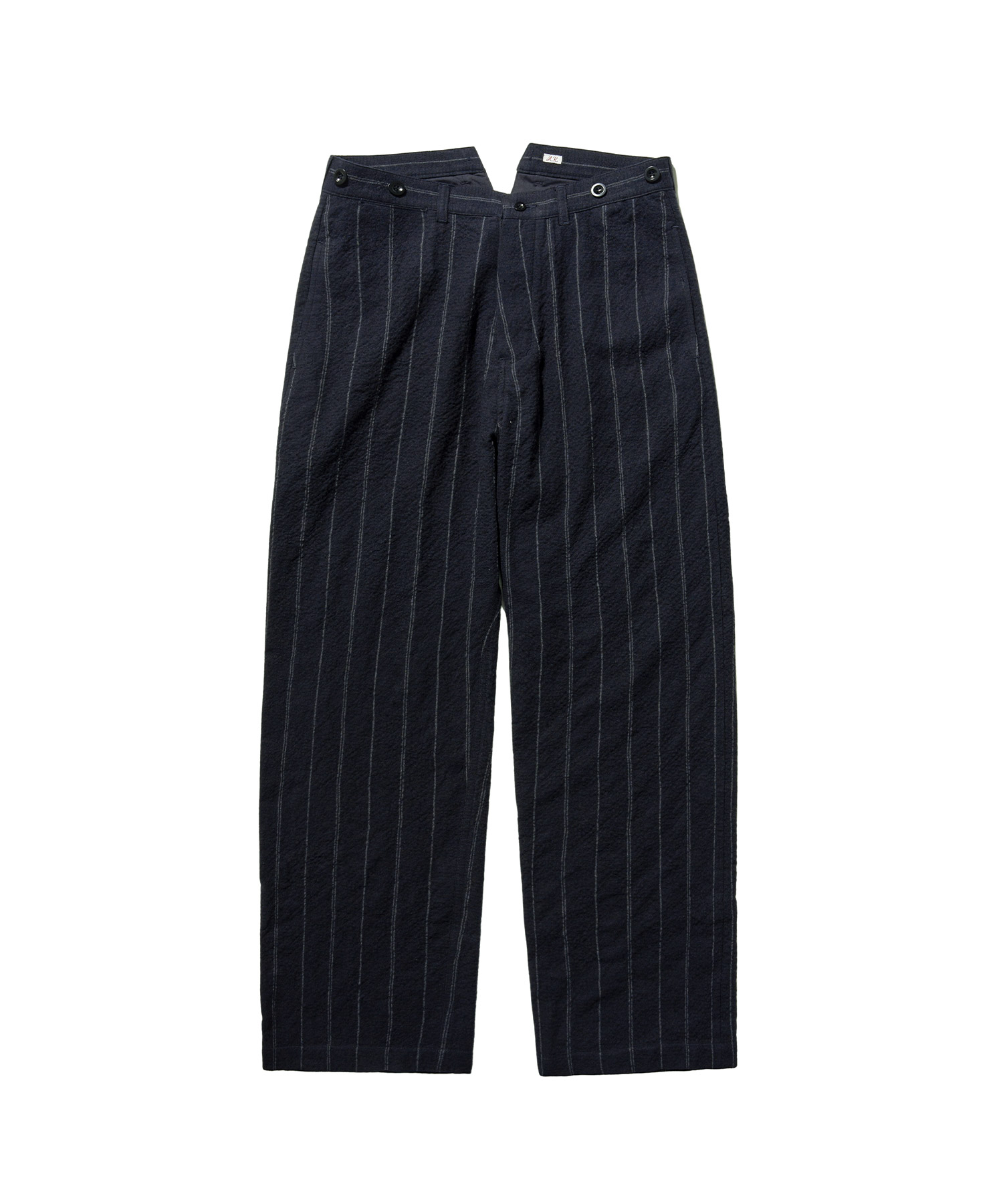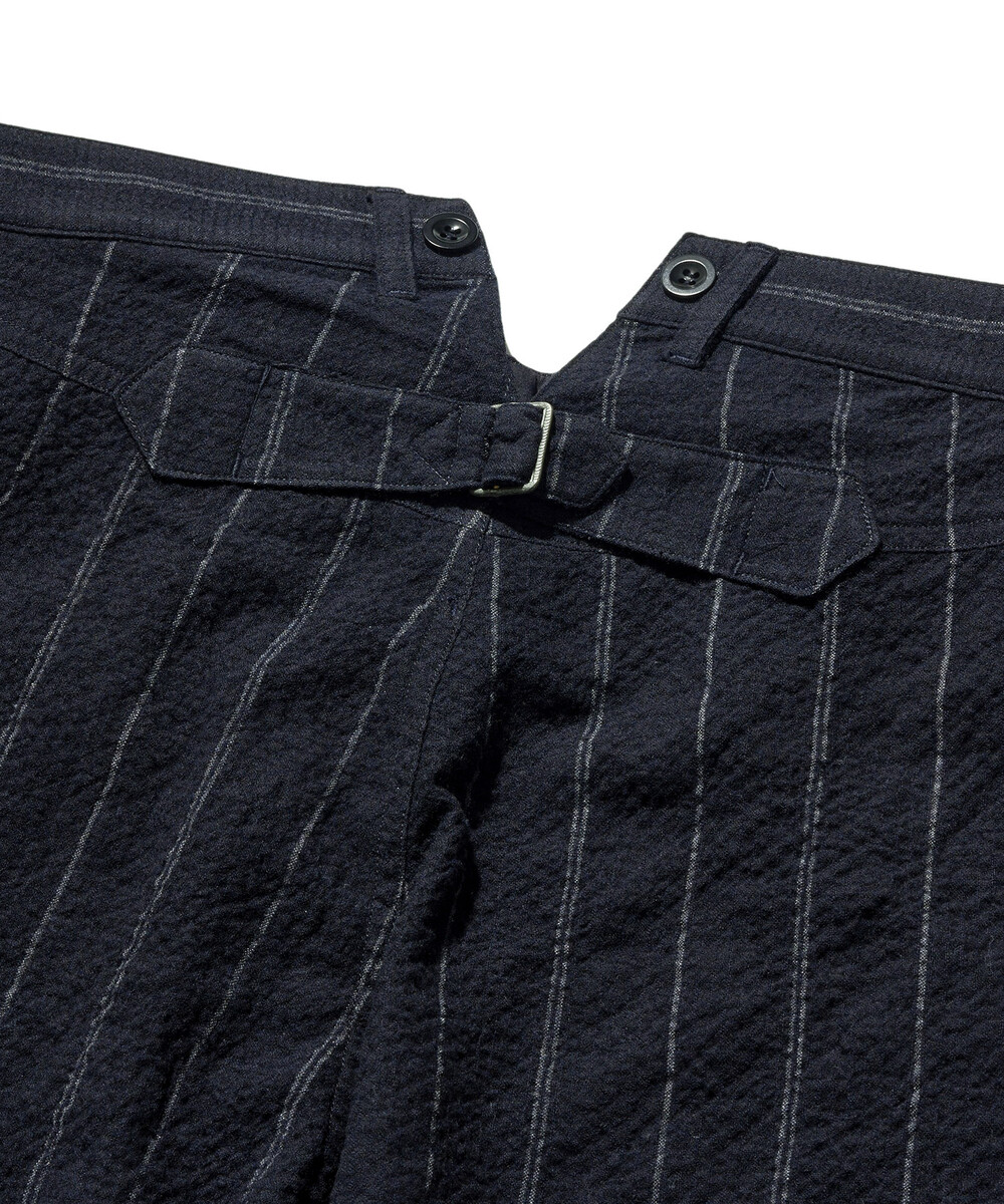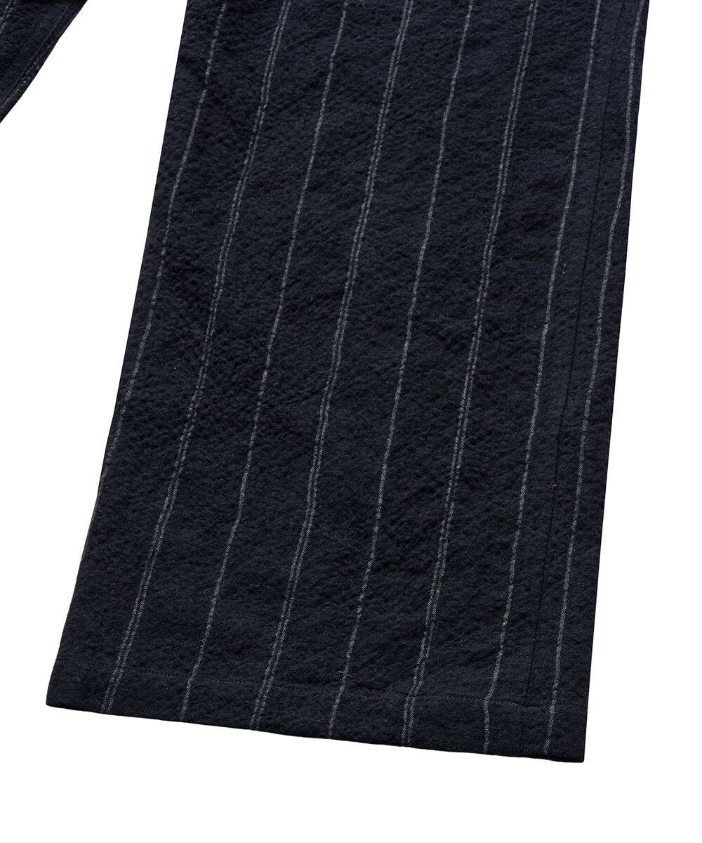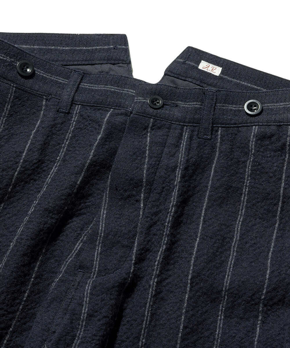 스트라이프는 두 줄과 한 줄이 불규칙하게 반복되는 형태로, 일반적인 스트라이프 팬츠와는 다른 빈티지한 느낌을 줍니다.