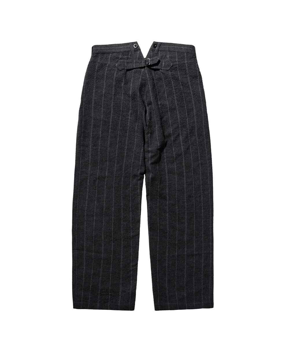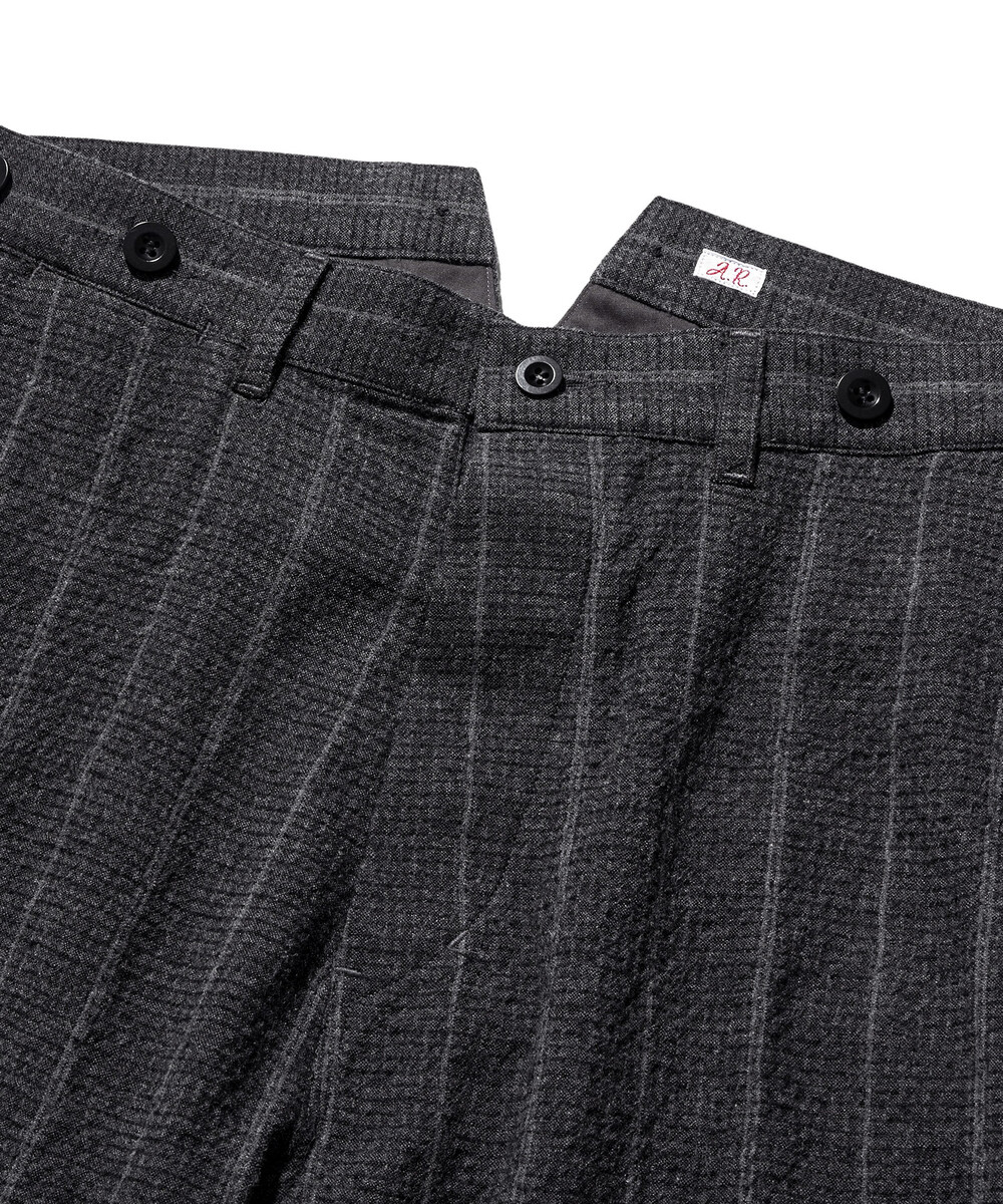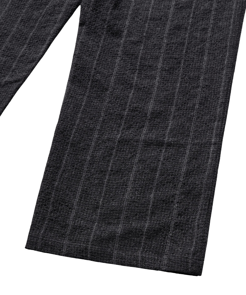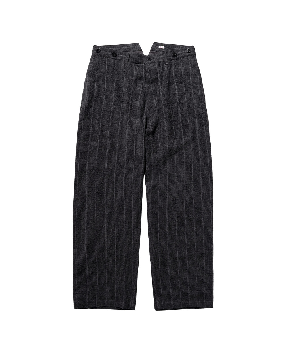 스트라이프는 두 줄과 한 줄이 불규칙하게 반복되는 형태로, 일반적인 스트라이프 팬츠와는 다른 빈티지한 느낌을 줍니다.