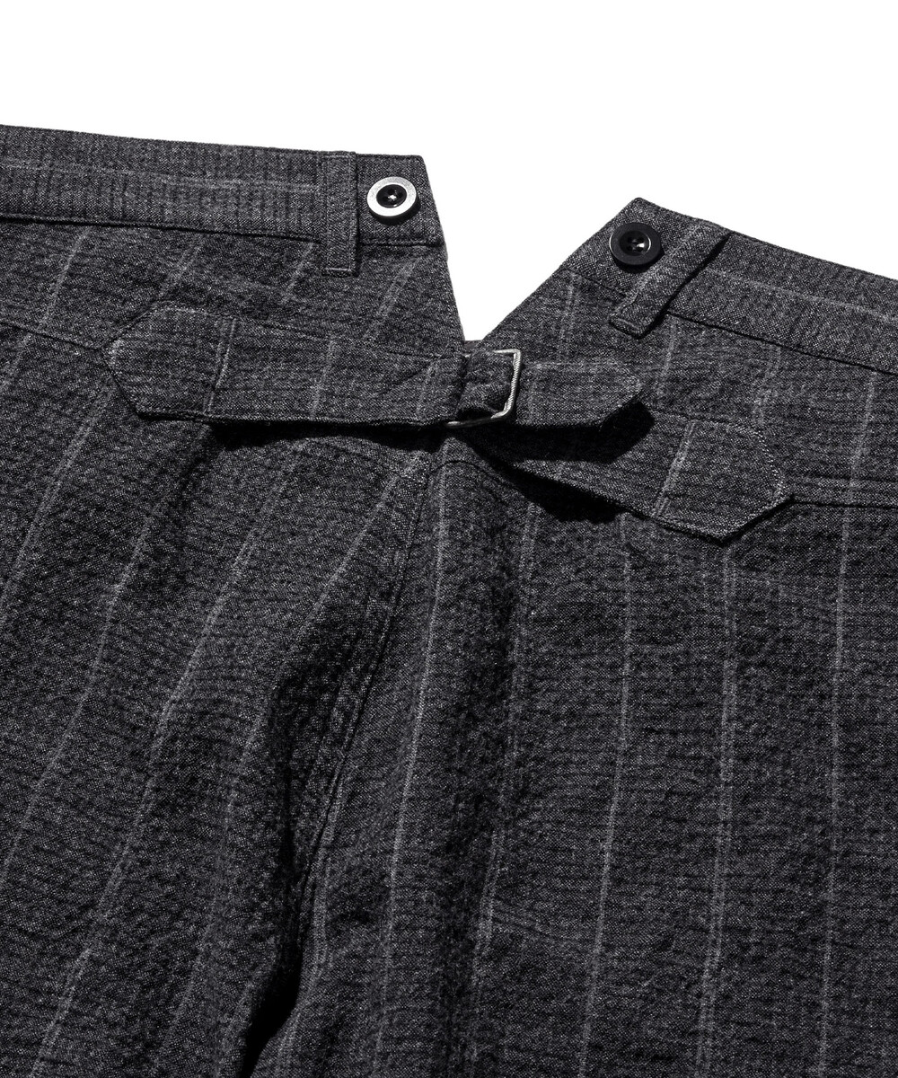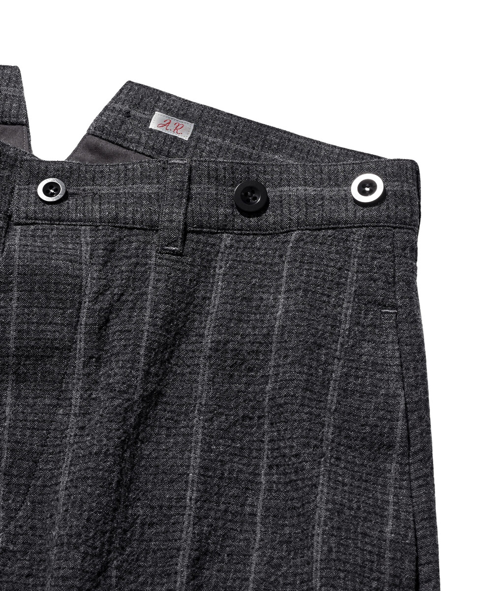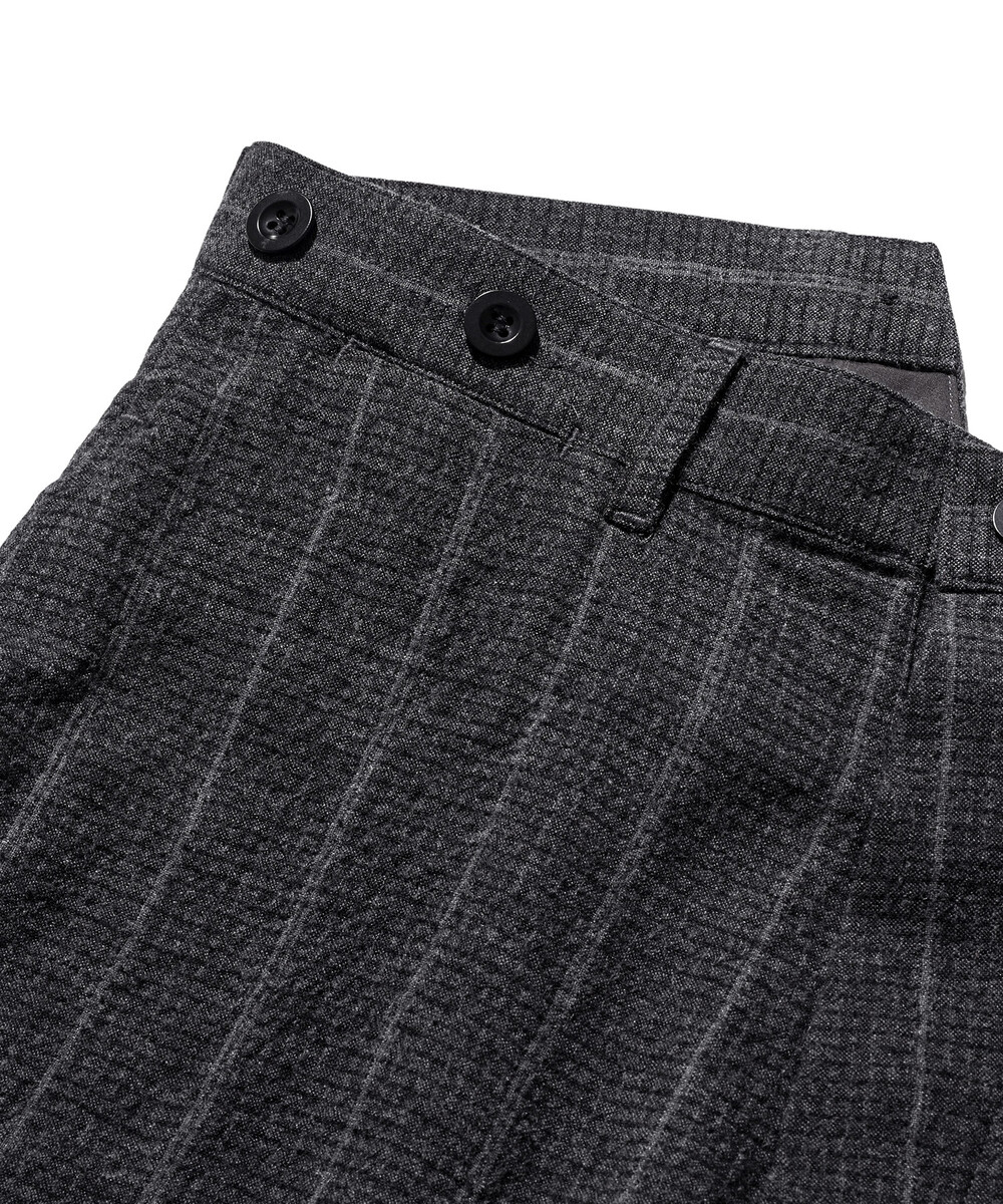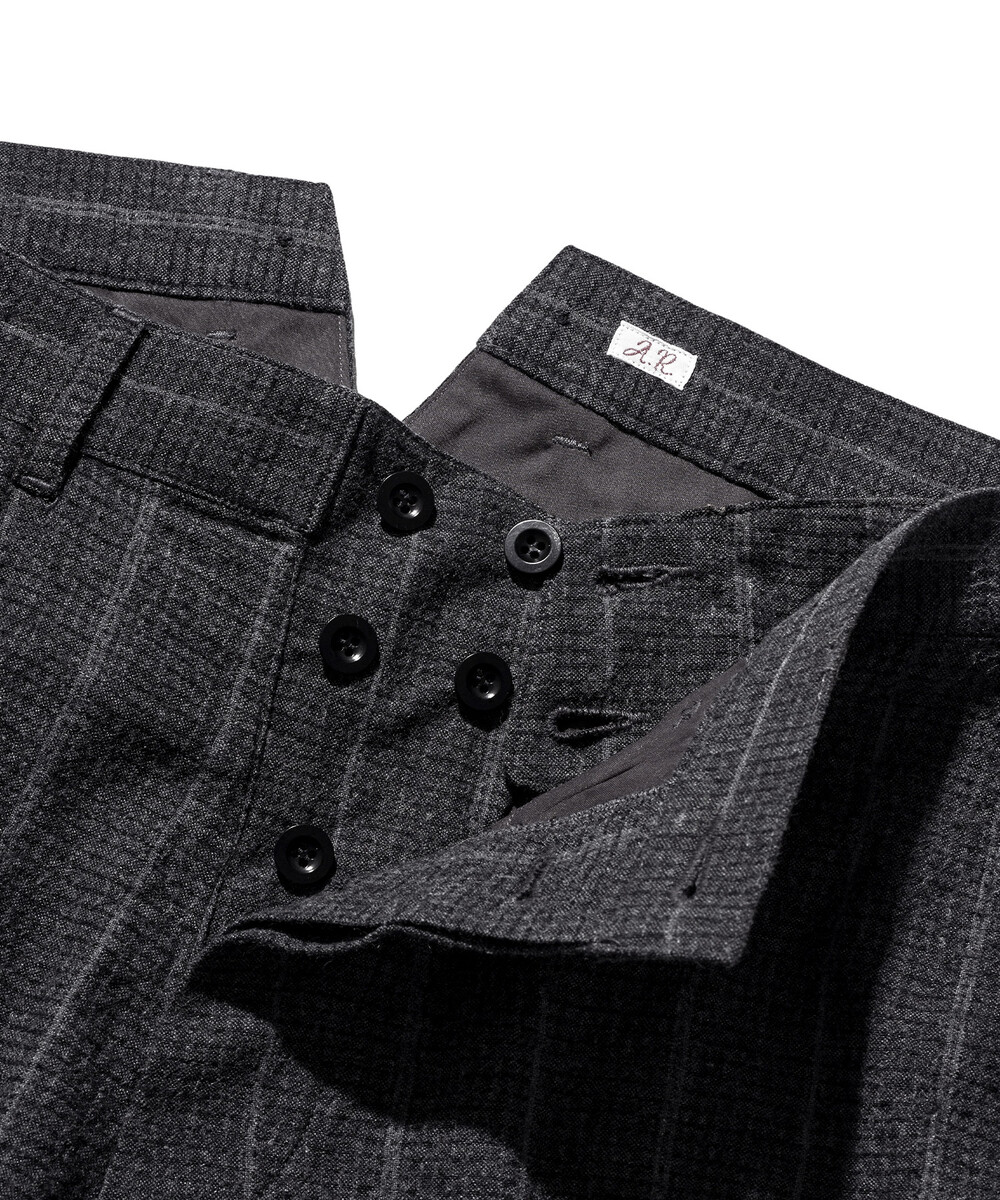 스트라이프는 두 줄과 한 줄이 불규칙하게 반복되는 형태로, 일반적인 스트라이프 팬츠와는 다른 빈티지한 느낌을 줍니다.