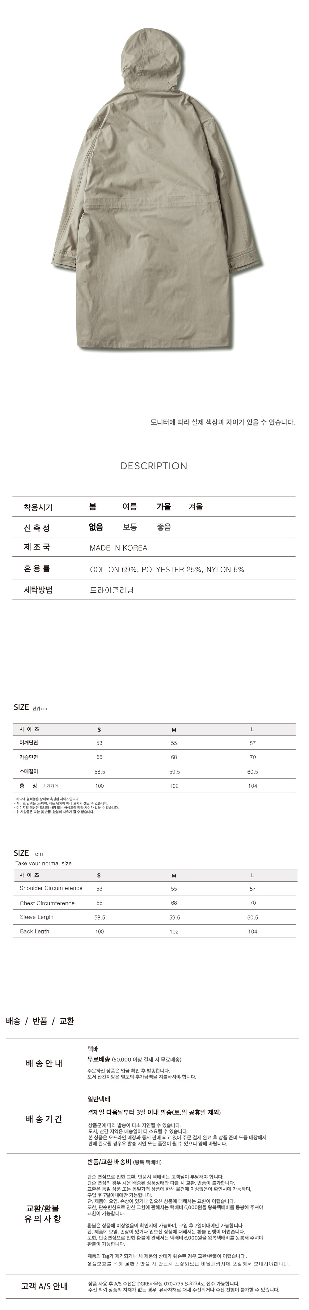 2차대전 10 산악사단들에게 보급되었던 양면 리버시블 마운틴 파카를 베이스로 제작되어졌습니다. 리버시블을 단면으로 변경하고 포켓, 후드, 카라의 모양과 각도 등을 DGRE의 시각으로 재해석한 상품입니다.