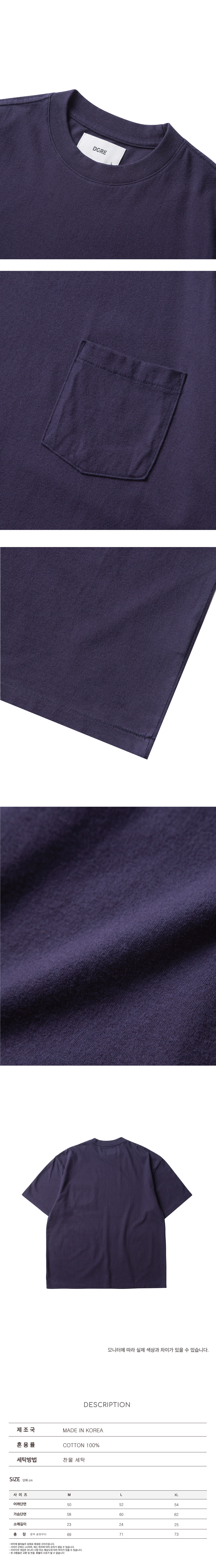 부드러운 터치감과 색감이 인상적인 원포켓 티셔츠 입니다.