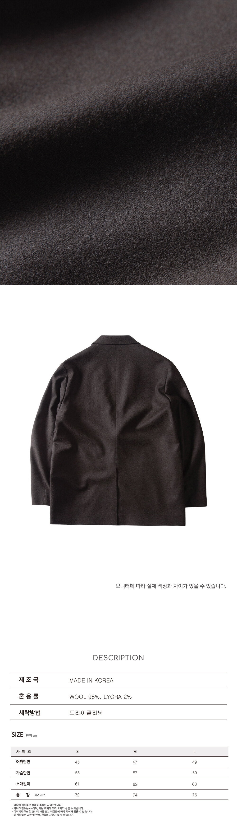 굉장히 여유있는 핏으로 편안하고 무드있게 연출 할 수 있는 자켓입니다.