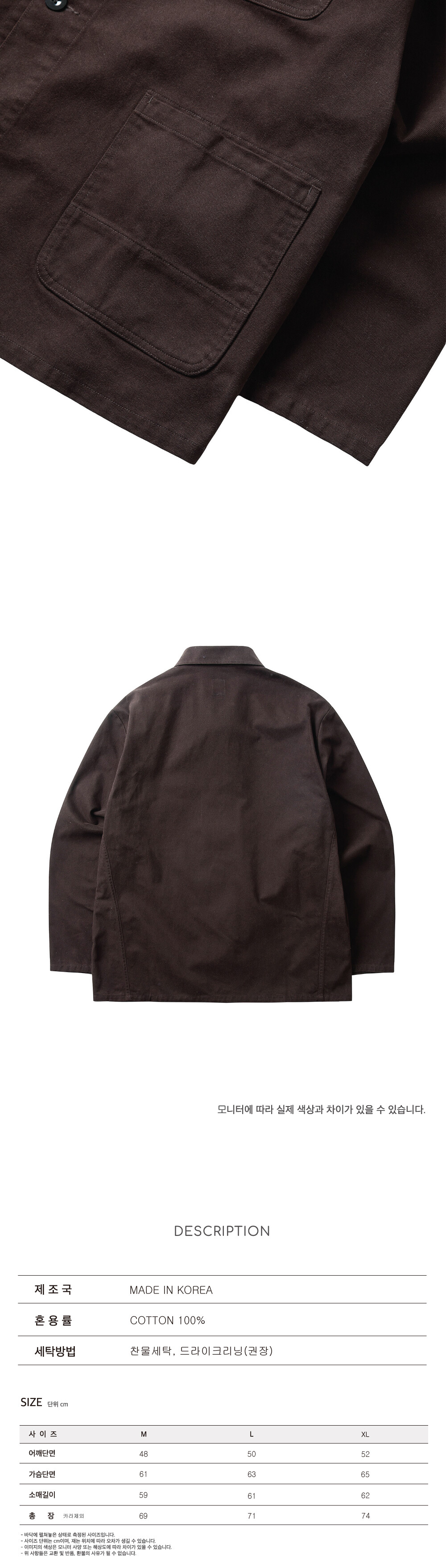 여유있는 핏의 워크자켓입니다.