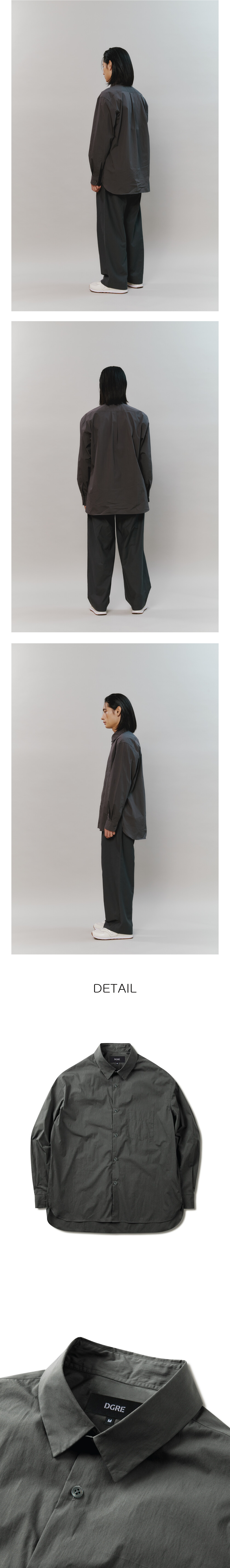 편안함을 위한 실루엣으로 굉장히 여유있는 패턴의 핏입니다. 카라와 소매 등에 비접착 심지를 사용하여 딱딱하지 않고 캐주얼한 자연스러운 느낌을 보여줍니다. 밑단부분은 편안함을 위해 절개하였고 곡선의 라인감을 아름답게 표현하기위해 곡선 또한 신경써서 만든 제품입니다. 앞기장 보다 뒷기장이 긴 형태로 레어어드나 스타일링에도 좋습니다.